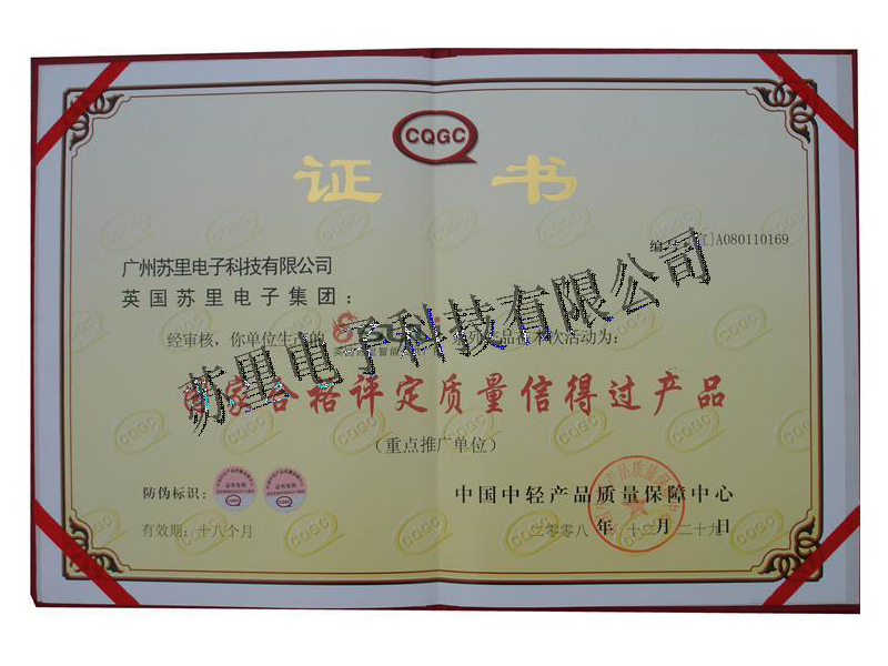 國家合格產品證書